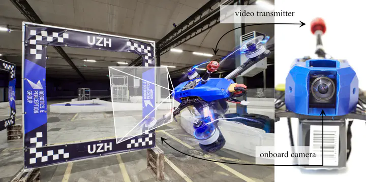 We present the first vision-based quadrotor system that autonomously navigates through a sequence of gates at high speeds while directly mapping pixels to control commands. Like professional drone-racing pilots, our system does not use explicit state estimation and leverages the same control commands humans use (collective thrust and body rates). We demonstrate agile flight at speeds up to 40km/h with accelerations up to 2g. This is achieved by training vision-based policies with reinforcement learning (RL). The training is facilitated using an asymmetric actor-critic with access to privileged information. To overcome the computational complexity during image-based RL training, we use the inner edges of the gates as a sensor abstraction. Our approach enables autonomous agile flight with standard, off-the-shelf hardware.