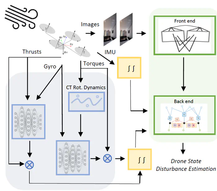 Visual-inertial odometry (VIO) is widely used for state estimation in autonomous micro aerial vehicles using onboard sensors. Current methods improve VIO by incorporating a model of the translational vehicle dynamics, yet their performance degrades when faced with low-accuracy vehicle models or continuous external disturbances, like wind. Additionally, incorporating rotational dynamics in these models is computationally intractable when they are deployed in online applications, e.g., in a closed-loop control system. We present HDVIO2.0, which models full 6-DoF, translational and rotational, vehicle dynamics and tightly incorporates them into a VIO with minimal impact on the runtime. HDVIO2.0 builds upon the previous work, HDVIO, and addresses these challenges through a hybrid dynamics model combining a point-mass vehicle model with a learning-based component, with access to control commands and IMU history, to capture complex aerodynamic effects. The key idea behind modeling the rotational dynamics is to represent them with continuous-time functions. HDVIO2.0 leverages the divergence between the actual motion and the predicted motion from the hybrid dynamics model to estimate external forces as well as the robot state. Our system surpasses the performance of state-of-the-art methods in experiments using public and new drone dynamics datasets, as well as real-world flights in winds up to 25 km/h. Unlike existing approaches, we also show that accurate vehicle dynamics predictions are achievable without precise knowledge of the full vehicle state.